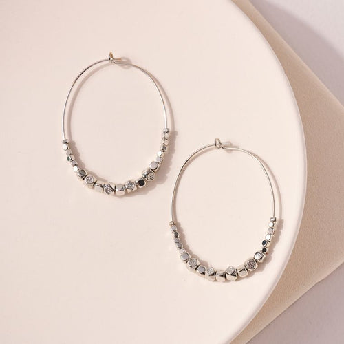 Metal Beaded Wire Hoop Earrings - Silver