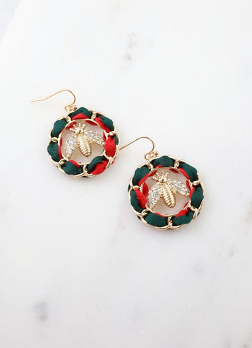 Ladies Queen Bee Red/Green Ribbon Earrings