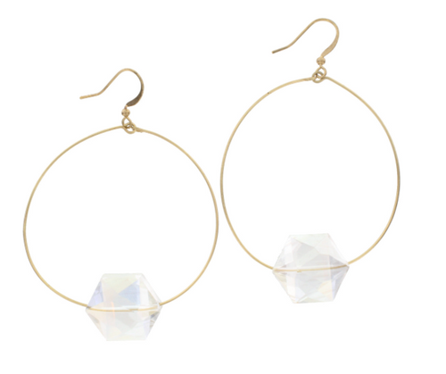 Gold Hoop Earrings with Clear Crystals