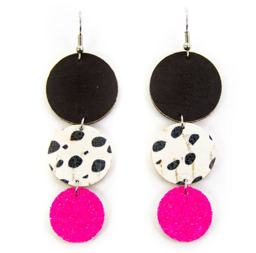Dalmatian and Pink Leather Earrings